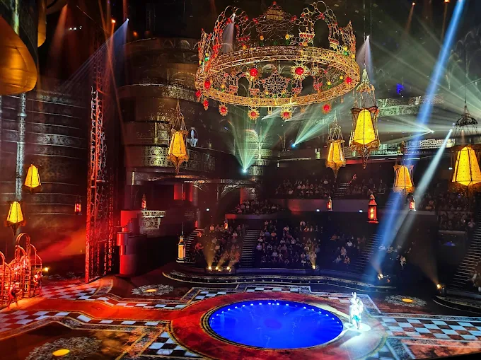 Our representatives pick you up from your hotel in our vehicles if you choose the transport option. Once you are in, you will be amazed to see the on-stage pool (aqua stage) that uses 2.7 million litres water innovatively in acts and has 1300 seats occupied by the audience in a circular orientation; the round arrangement is done to keep the audience intimate to the live performances from all possible ends. You can pick your own tickets while booking; bronze, silver, gold and VIP.